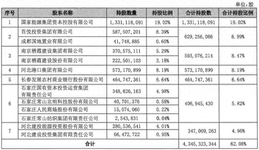 河北建投集团受让股份之后,与关联方的持股比例升至5.41%,晋升为重要股东,仍为第七大股东。