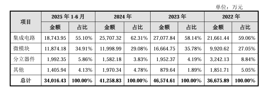 招股书显示,江苏展芯专注于高可靠模拟芯片及微模块产品的研发设计、测试及销售,其中模拟芯片产品以电源管理芯片为主,细分产品包括DC/DC转换芯片、线性稳压器(LDO)、负载及限流开关(LoadSwitch)等;微模块产品可实现隔离与非隔离DC/DC变换、逻辑控制、信号调制、二极管控制等多种功能;同时公司还向客户配套提供分立器件产品。