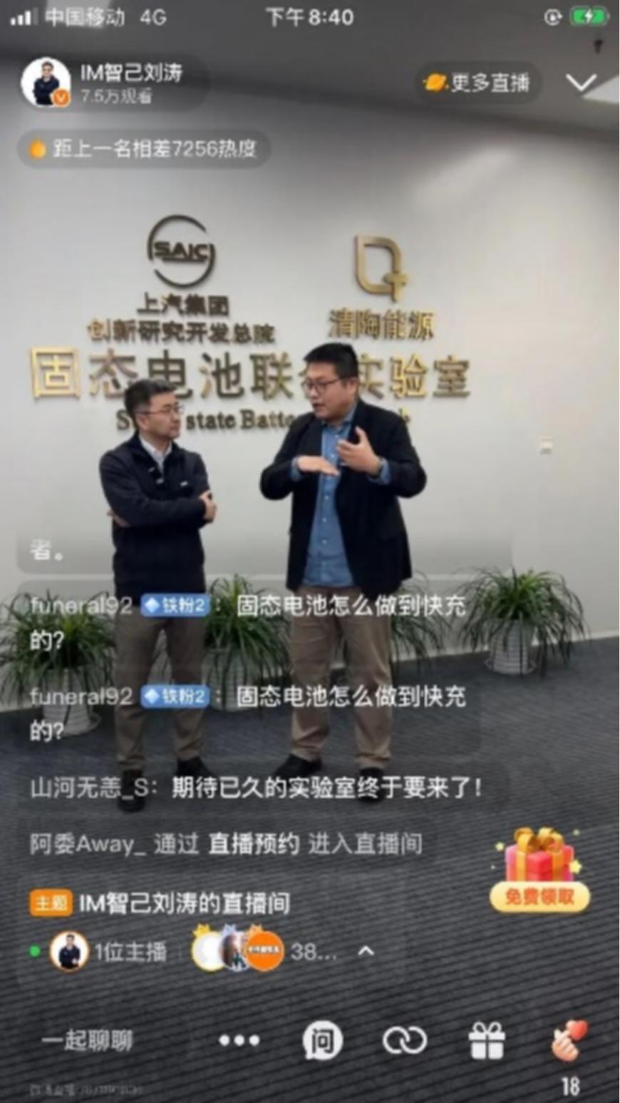 比如智己CEO刘涛与清陶能源总经理李峥在直播中展示了清陶能源为智己L6提供的电池,其电解质材料为一种固态的白色粉末,虽然不是“液态”,却需要“润湿剂”辅助使用,而该“润湿剂”的质量占比约为电池整体的10%。这一液体含量处于“半固态电池”定义的下限门槛,无论如何都不能算是“全固态电池”。
