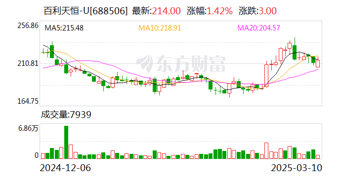 截至发稿,百利天恒报215.12元/股,涨1.95%,总市值862.63亿元。